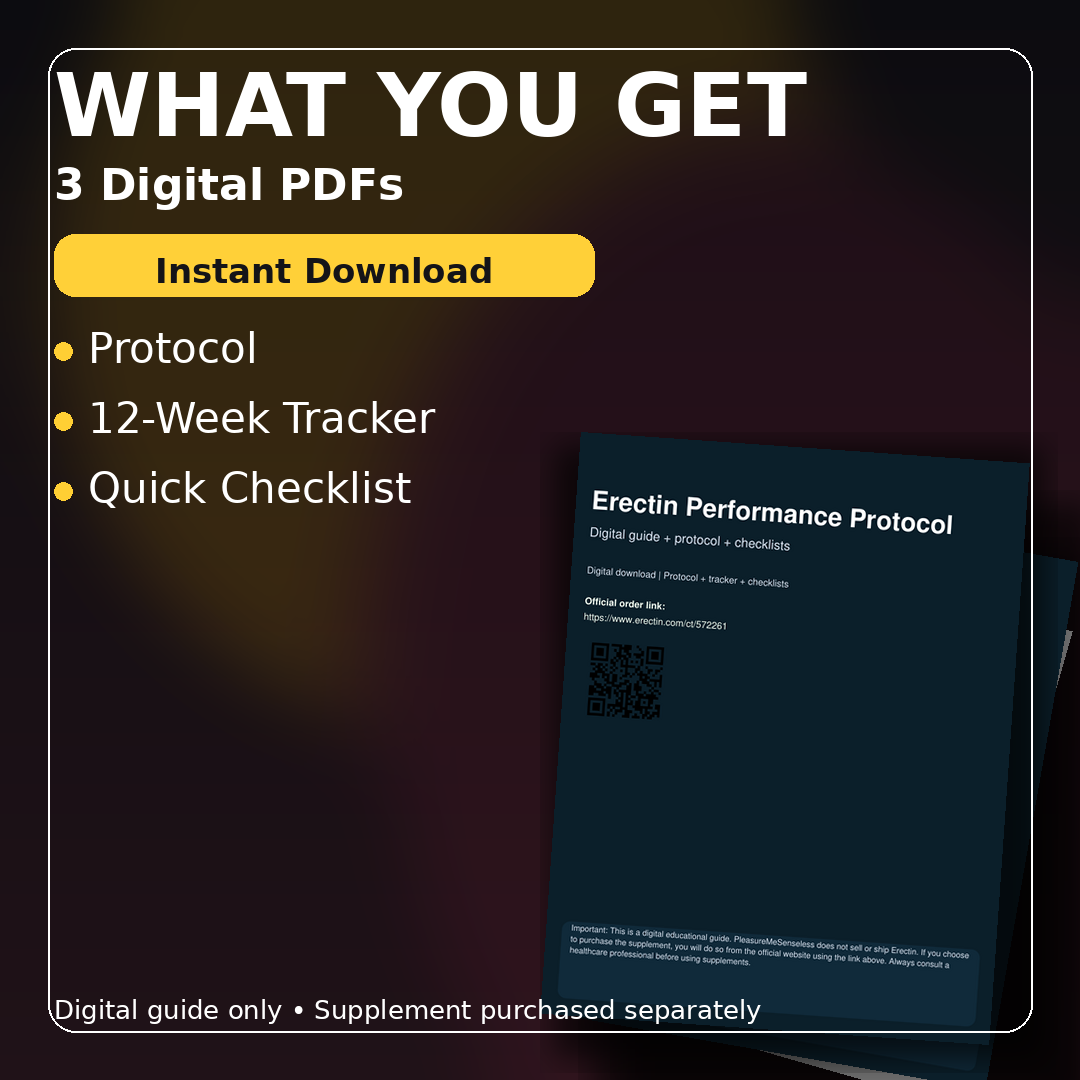 This is a digital product only. We are not the manufacturer of Erectin. This page contains affiliate links and we may earn a commission if you purchase through our link. Always consult a qualified health professional before starting any supplement, especially if you have a medical condition or take medication.